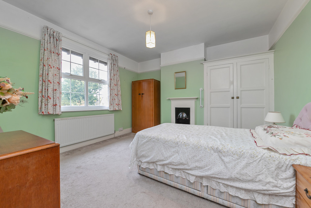 BEDROOM 14' 1" x 13' 0" (4.29m x 3.96m) uPVC double glazed window to front aspect, wall mounted single panel radiator, cast iron fireplace with tiled inset, fitted cupboard with coat hooks and shelf.