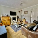LOUNGE 12' 2" x 11' 11" (3.71m x 3.63m) uPVC double glazed leaded light window to front aspect, wall mounted radiator, wood laminate floor, built in cupboard, coving to textured ceiling, modern electric fire with surround and hearth. Panelled door to: