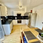 KITCHEN 14' 5" x 10' 6" (4.39m x 3.2m) uPVC double glazed window and uPVC double glazed French doors to rear. Range of fitted eye level and base units with work surface over, stainless steel sink and drainer unit, tiled splash back, built in oven with electric hob and extractor over. Space for fridge/freezer and washing machine, wood laminate floor, wall mounted radiator, wall mounted boiler.