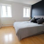MASTER BEDROOM 10' 10" x 10' 2" (3.3m x 3.1m) Two uPVC double glazed windows to front elevation, single panel radiator, two built in double wardrobes, laminated wood effect flooring, door to: