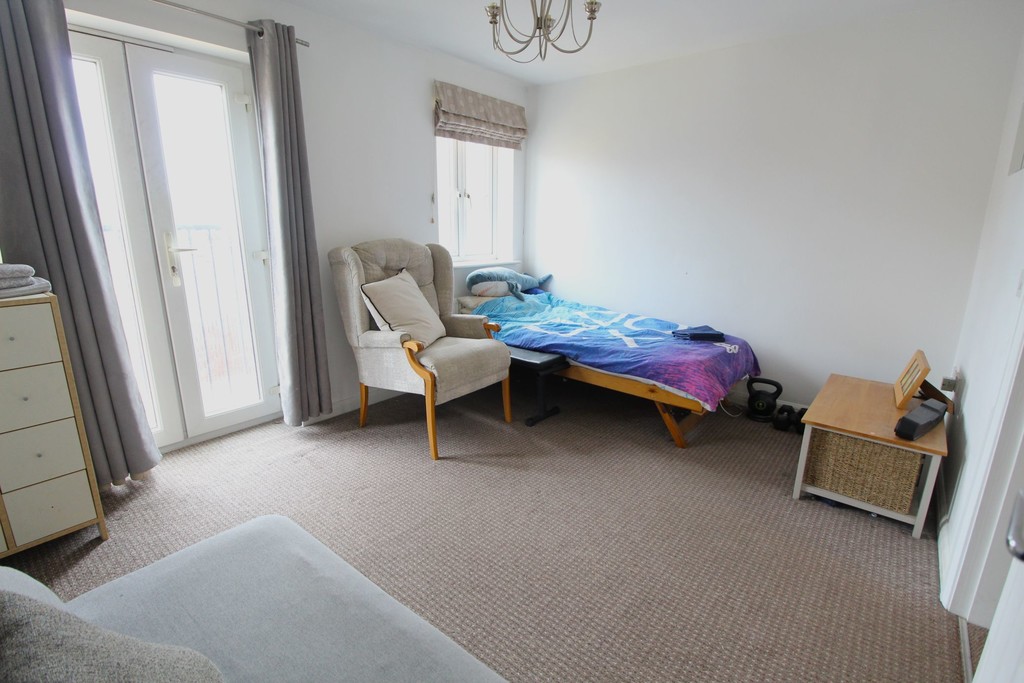 BEDROOM TWO 12' 10" x 10' (3.91m x 3.05m) uPVC double glazed window to front elevation and uPVC double glazed French doors to front elevation with Juliet balcony, double panel radiator and single panel radiator.