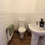CLOAKROOM Single panel radiator, fitted two piece white suite comprising low level W.C and wash hand basin, laminated wood effect flooring, fully tiled to half height to all elevations, extractor fan.